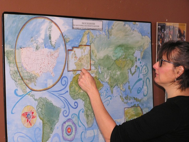 Pinning the Map of Survivors Published on April 16, 2015 in Hanging Our First ShowFull resolution (2048 × 1536) ← Previous Next → Pinning the Map of Spinal Arachnoiditis Survivors Map Pins by Linda Funsch