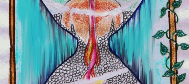 The significance of Cerebrospinal Fluid Flow Rotation was the key that unlocked the mystery of how I could re-learn to live my life. In my case, this obstruction at multiple spinal levels IS, and will always be, the origin of much of my neurological dysfunction. It became such a big part of pain navigation that a pervasive awareness of it underlies everything I am doing now. Sometimes, quietly tracking my remaining minutes, I am conscious of it running out like the sand in the hour glass shown in the art journal doodle above.