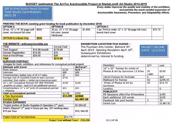 As of this post, The Artist Stipend for this project remains unpaid. Additional details available in The Art For Arachnoiditis Project CUMULATIVE FISCAL SUMMARY